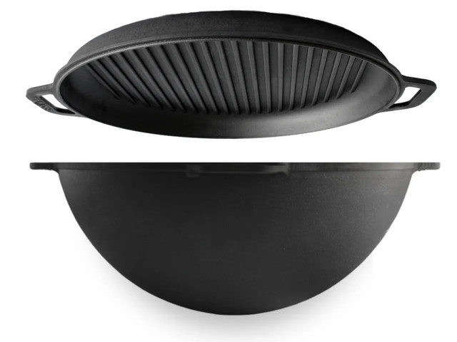 При дбайливому догляді чавунний посуд прослужить вам дуже довго! Укомплектований дужкою та чавунною кришкою-сковородою.