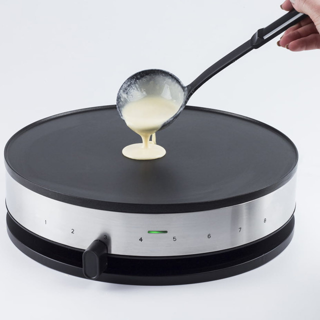 Млинець Caso CM 1300 вирізняється серед інших своїм оригінальним дизайном. На передній панелі розташовані світлові індикатори включення і перемикач, що обертається, завдяки якому можна налаштувати потрібну вам температуру нагріву. Млинець Caso CM 1300 розподіляє тепло нагріву рівномірно по всьому периметру, що дає можливість отримати ідеальні млинці або оладки. Також є антипригарне покриття, що позбавляє необхідності у використанні великої кількості масла.